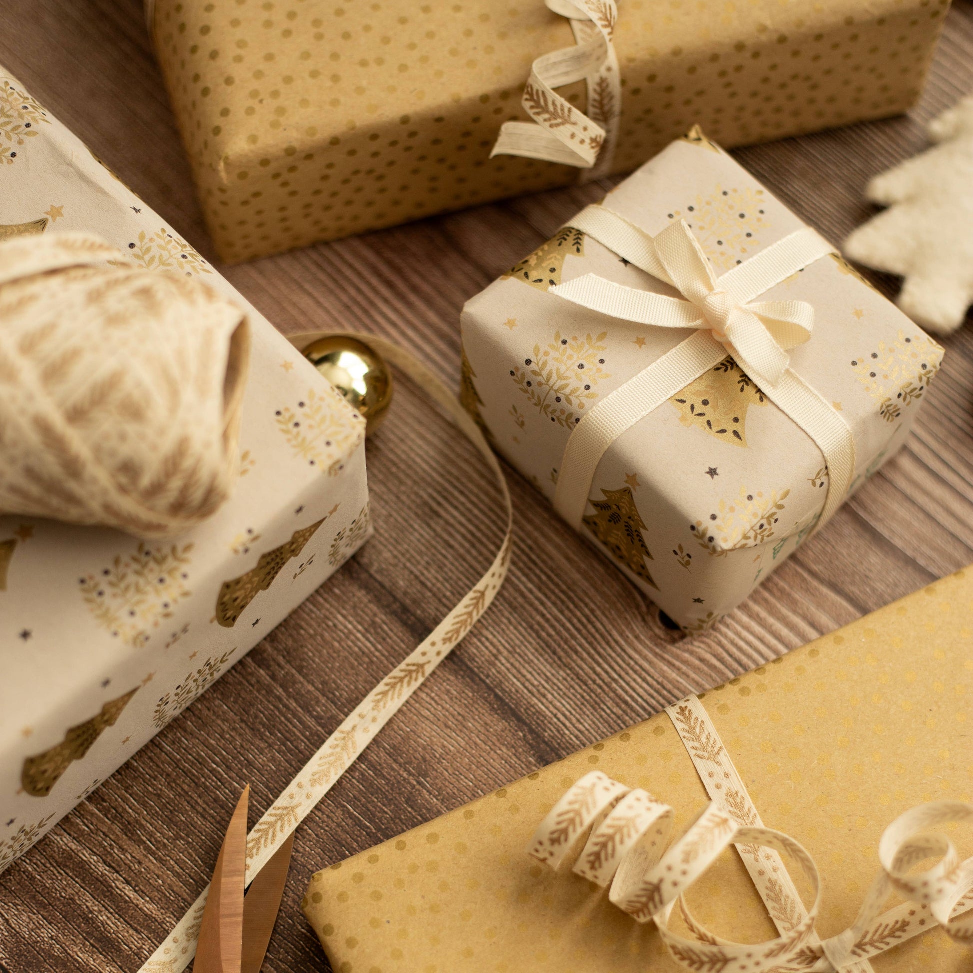 5m roll of Gold Christmas Trees Festive Gift Wrap