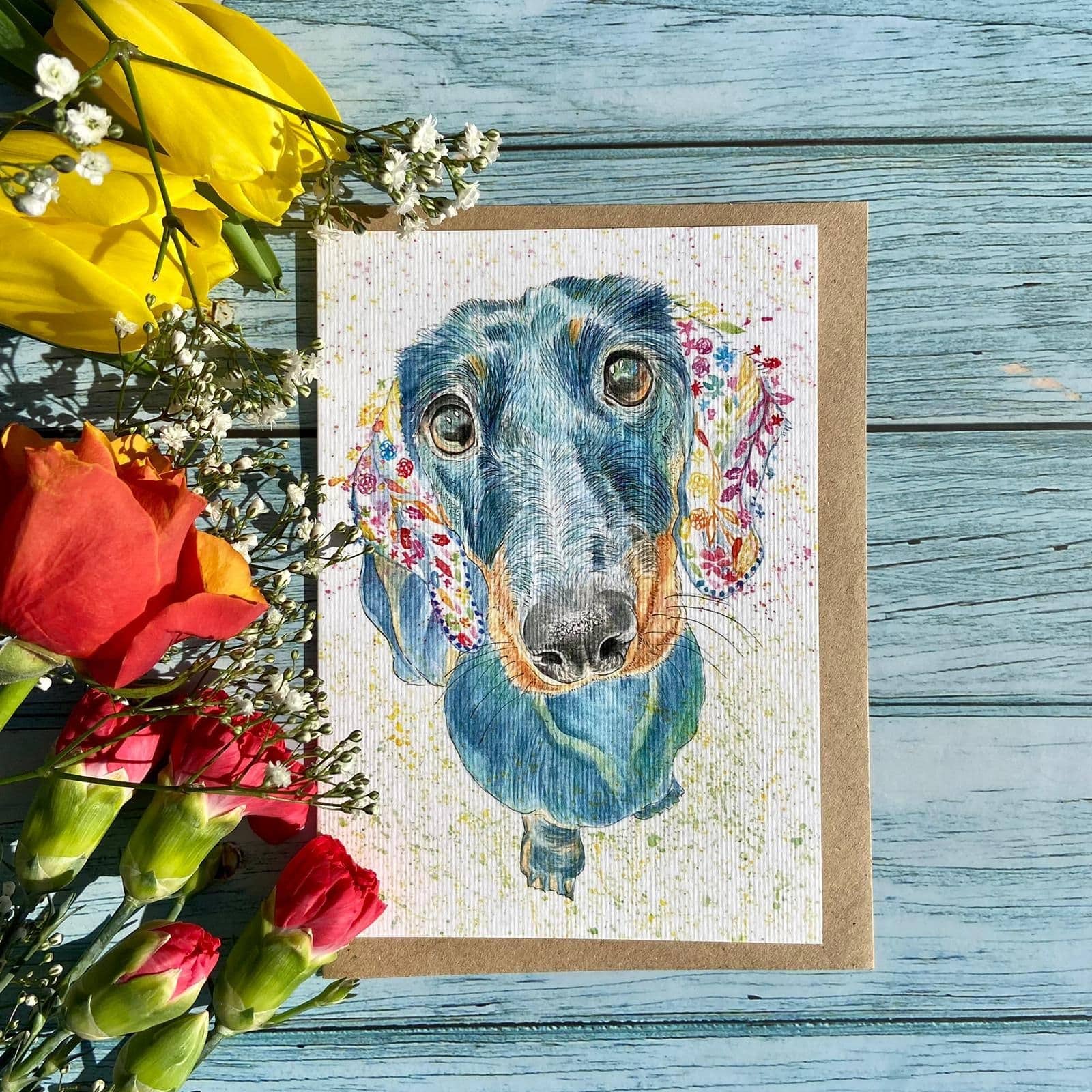 Moose the Dachshund | Eco Friendly Card | Colourful | Greetings | Dog | Blank | Animal | Cute | Nature | Occasion | Cute