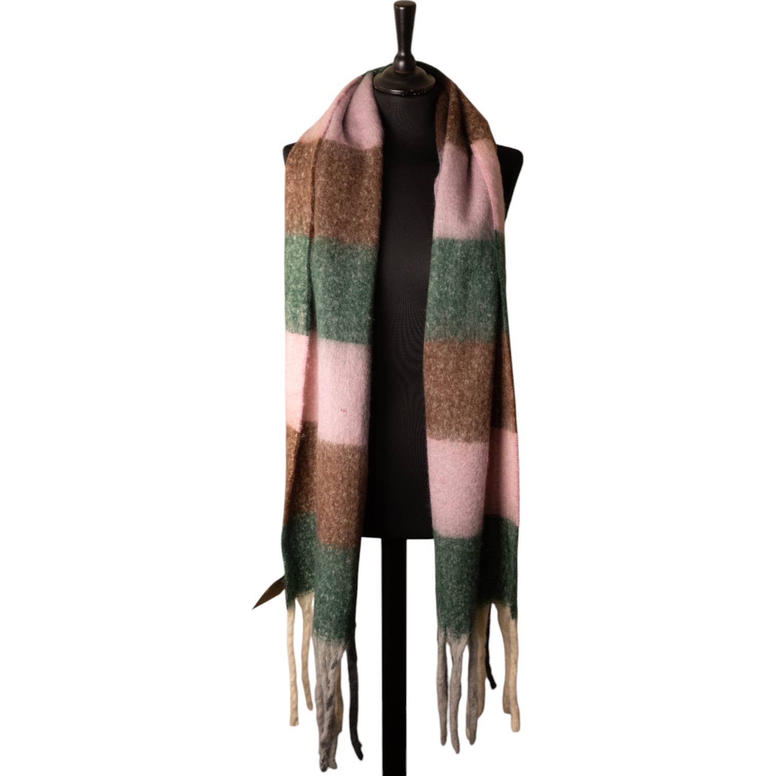 ✔️Chunky, oversized blanket scarf in a gradient check pattern with a tassel fringe