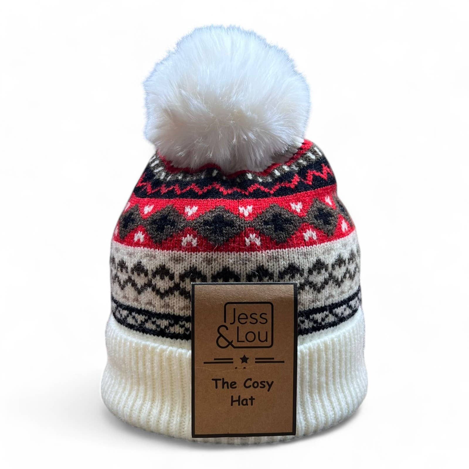 The Unisex Nordic Cosy Bobble Hat brings a cosy, festive touch to your winter wardrobe. Available in classic black, soft cream, and bold red, this hat features a traditional Nordic-inspired design with intricate patterns, perfect for adding a bit of winter charm to your look. The playful bobble on top adds an extra element of fun, while the soft, knitted fabric ensures warmth and comfort throughout the colder months. Ideal for both men and women, this versatile beanie pairs easily with any casual winter outfit, keeping you stylish and snug during your outdoor adventures or relaxed moments. Stay warm, stay chic with the Nordic Cosy Bobble Hat.